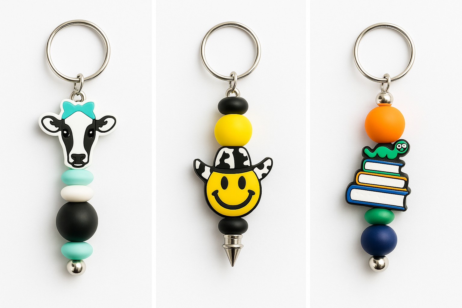 Add a pop of personality to your keys, backpack, purse, or lanyard with these adorable Beaded Silicone Keychains from Wanderful Customs! Each keychain features soft-touch silicone beads, vibrant colors, and a unique themed charm—perfect for gifting or keeping all to yourself.