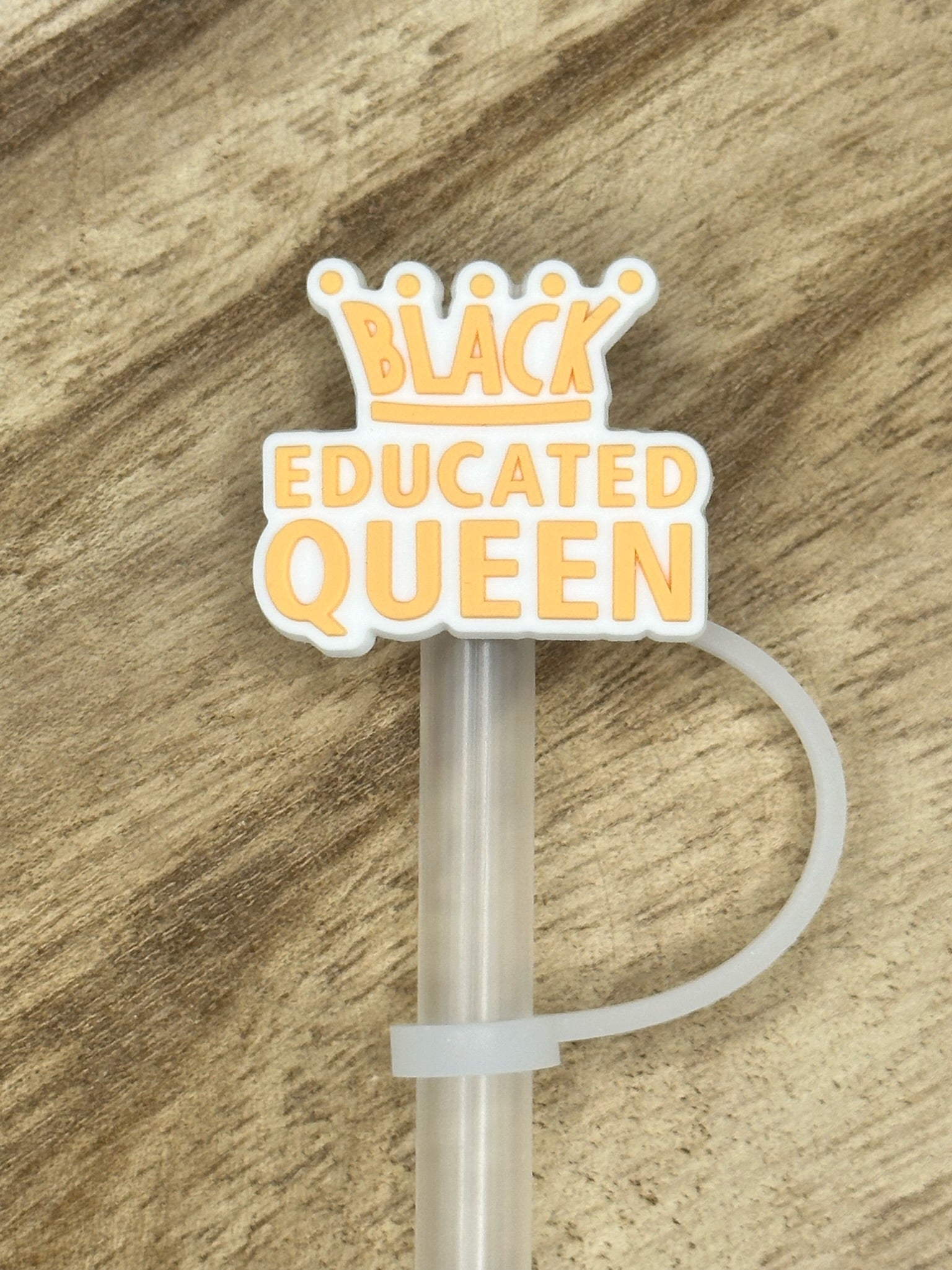 Black Educated Queen Straw Topper | Tumbler Accessory | Gifts for Her