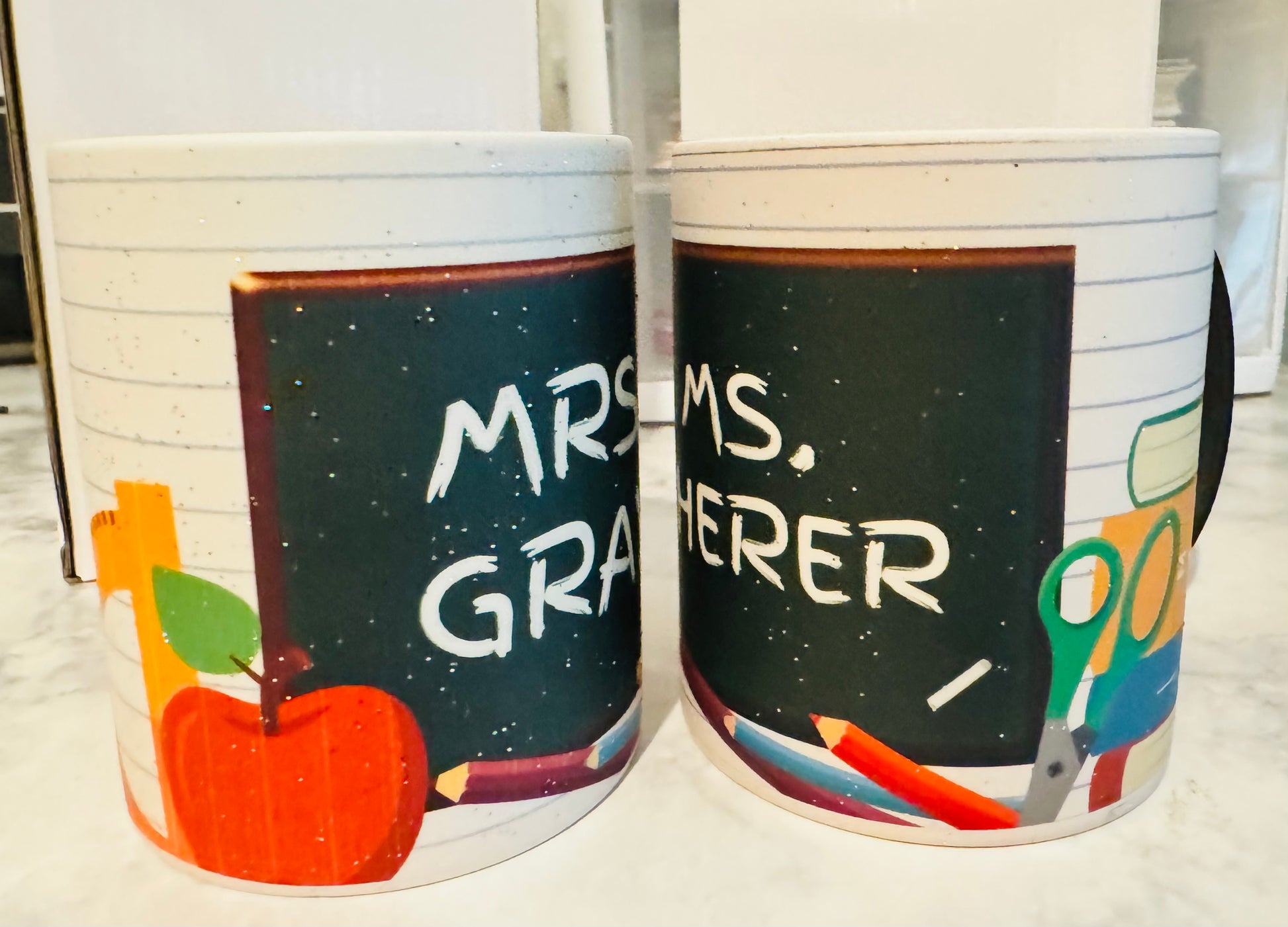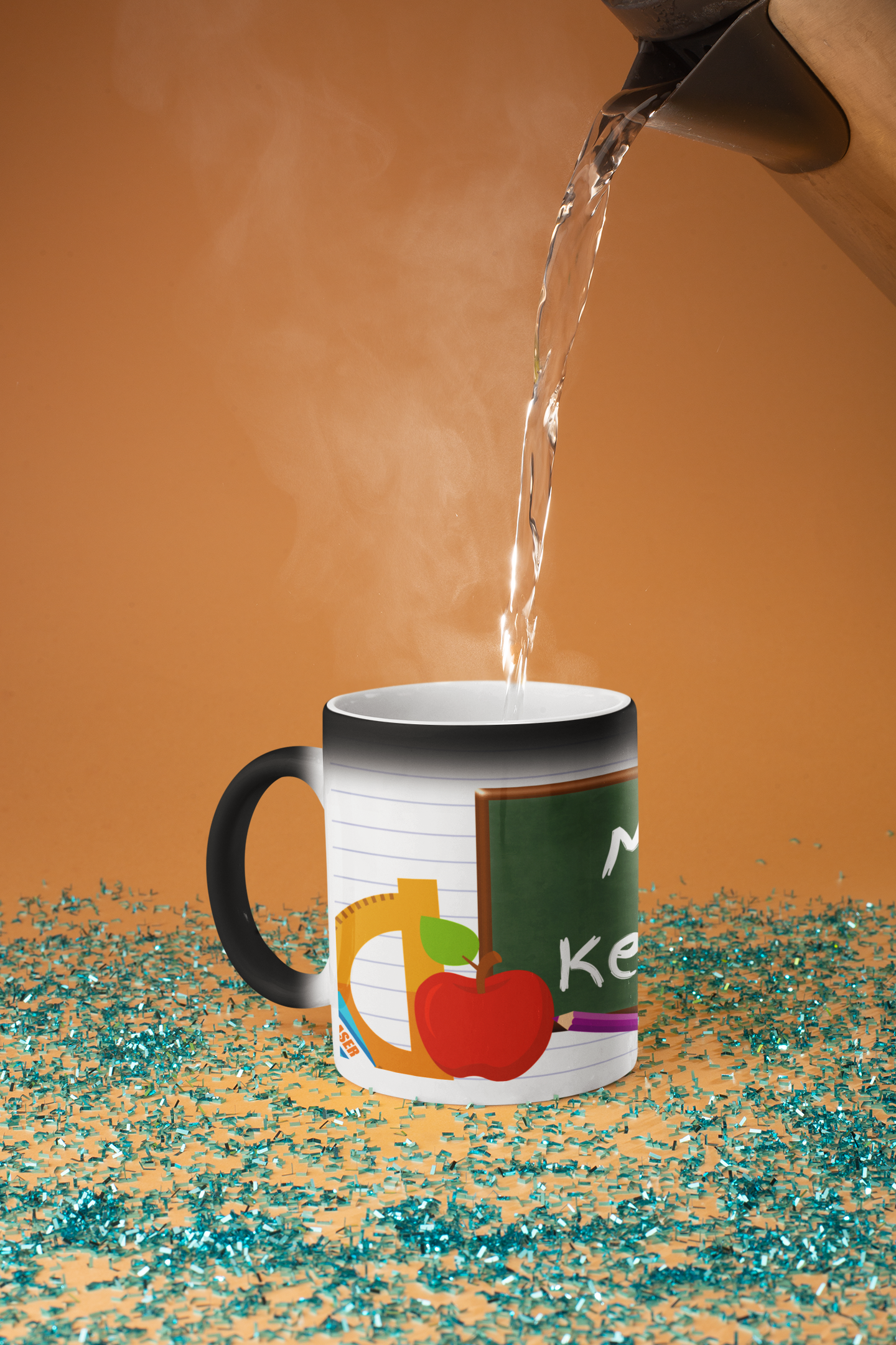 Unveiling our Color-Changing Magic Mug – a thoughtful fusion of functionality and creativity. This teacher-inspired design showcases classroom supplies against a backdrop of lined paper, with a personalized chalkboard at the center. A wonderful gift for teacher appreciation or Christmas, this mug transforms its appearance with temperature changes, creating a mesmerizing effect. Choose between the sleek matte black or the dazzling glitter black for a touch of elegance. Elevate your gift-giving game with this charming mug, a daily reminder of the invaluable work teachers do.