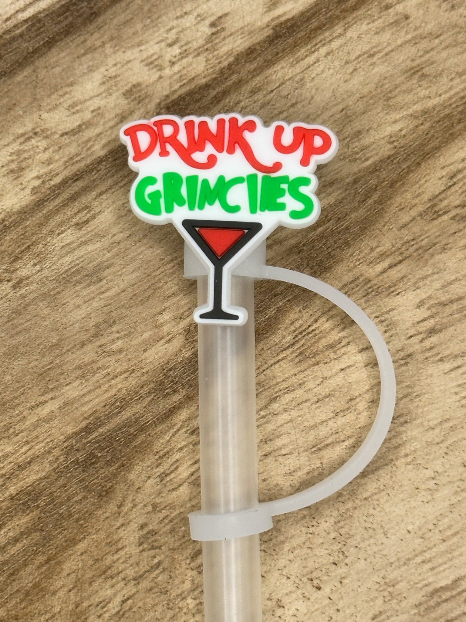 Drink Up Grinchies Straw Topper | Tumbler Accessory | Christmas Gift