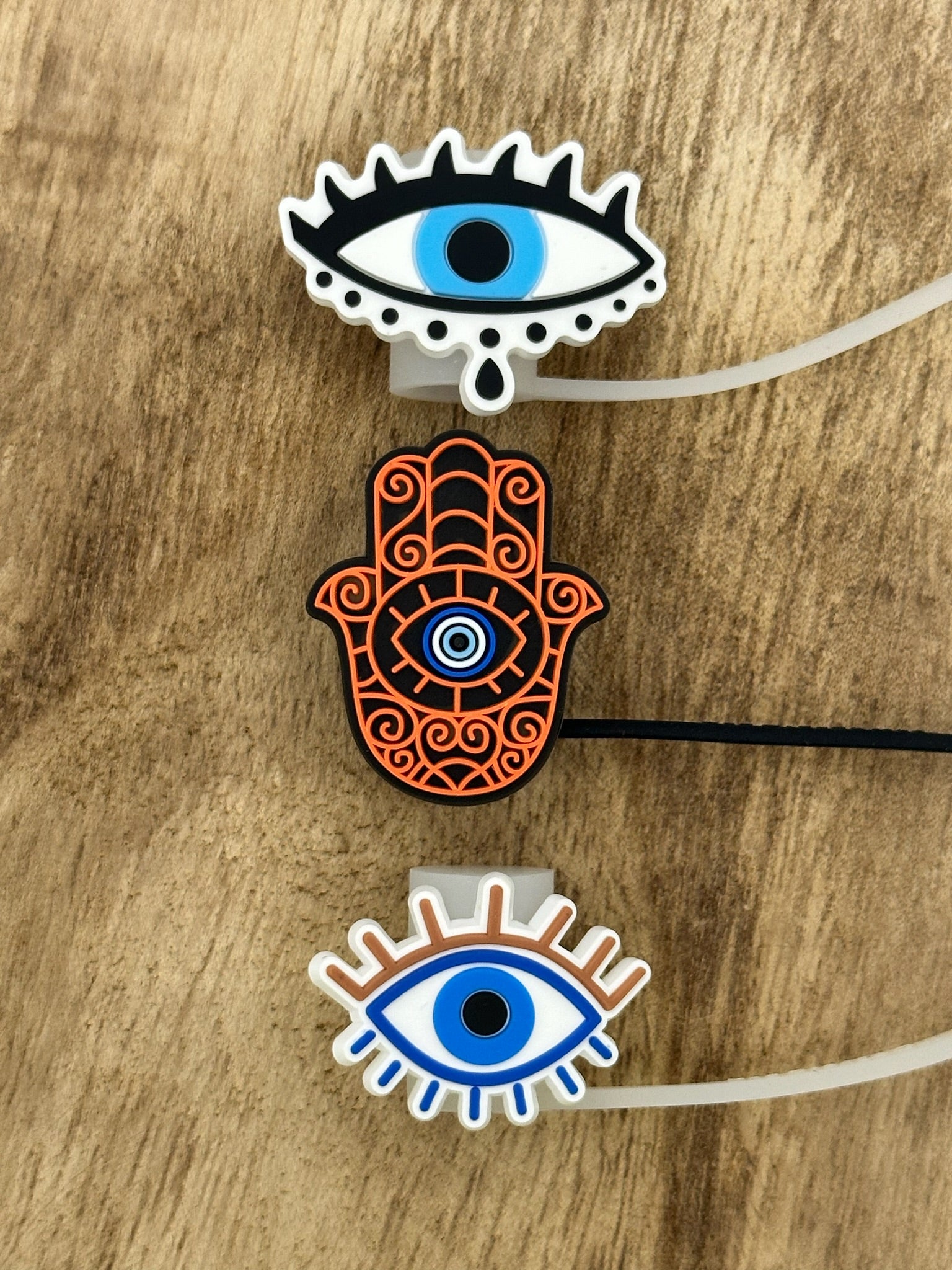 These versatile silicone straw toppers with hamsa hand and eye designs are perfect for adding a touch of style to any beverage. They feature a vibrant and eye-catching design that will make your drinks stand out from the crowd. The durable silicone material makes them easy to clean and reusable, making them an eco-friendly and sustainable alternative to disposable straws. The hamsa hand and eye design adds an extra touch of style and protection, making them perfect for anyone who wants to add a little extra flair to their drinks. They're perfect for parties, barbecues, beach days, or any other occasion where you want to add some personality to your drinks.