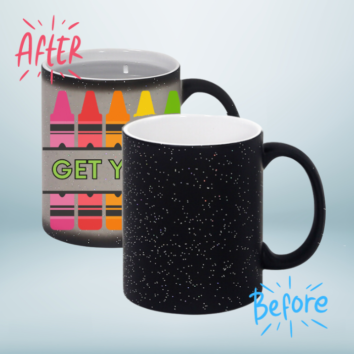 Introducing our Color-Changing Magic Mug, featuring a teacher-inspired design adorned with vibrant crayons and the motivational phrase 'Get your cray on' in the center. The perfect gift for teacher appreciation or Christmas, this mug transitions its appearance with temperature changes. Available in sophisticated matte black or sparkling glitter black, it adds a touch of magic to every sip. Make your teacher's day special with this unique and practical gift!