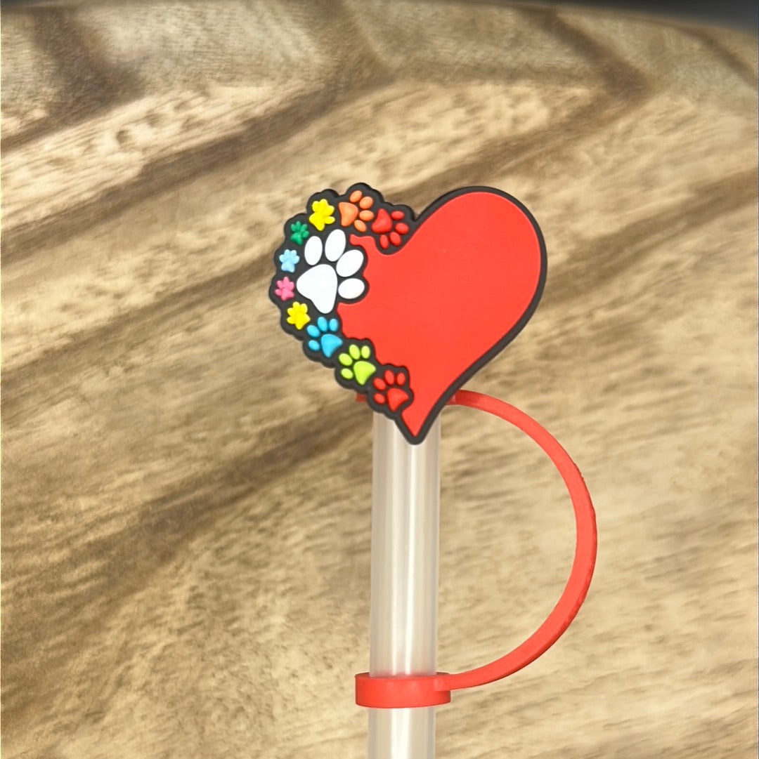 Heart with Paws Straw Topper | Tumbler Accessory | Animal Lover Gift | Veterinarian Appreciation Gifts